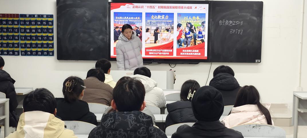2025年12月28日晚,数字经济学院学生党支部在希文楼211教室举行“青春学全会·奋进新征程”专题学习会,学生党支部青年委员张梦麒担任主讲,电子商务班级学生围桌而坐,共话青春与现代化的双向奔赴。